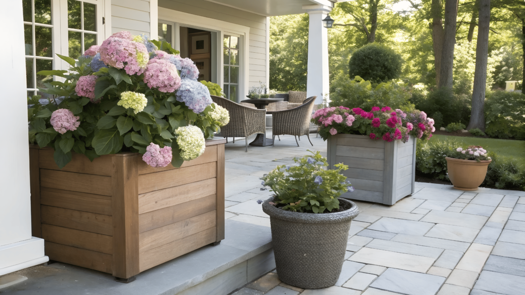 For hydrangeas, the choice always matters — not even the variety, but the shape, material, and placement. The same shrub can look calm, strict, temporary, or grounded. Everything depends on what it’s planted in and where it stands.