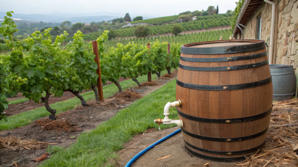 There are some backyard setups you first notice just as part of the landscape. But look closer, and you’ll spot subtle gutters under the pergola roof, thin chains or pipes running down the corners, and tall narrow barrels tucked among grapevines or wisteria. Not bulky rain barrels—but slim, vertical tanks that look like outdoor water heaters or lawn sprayer canisters.