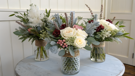 Dusty Miller, frosted eucalyptus, or lamb’s ear — for creating a cold background. - Decorative accents (2–3 elements)