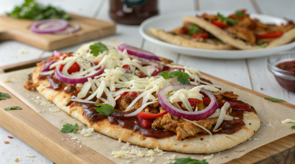 Flatbread is like pizza’s laid-back cousin — quicker, easier, and more adaptable. Want a vegan version? Swap the chicken for mushrooms and the BBQ sauce for tomato. Everything else is fair game.