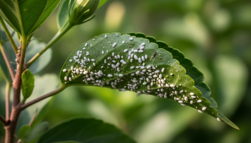 - whiteflies — small white insects that fly up when touched