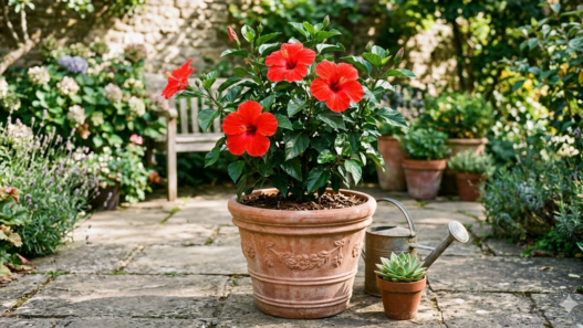 - 10-inch plant pot with drainage holes — a good base option for most medium hibiscus