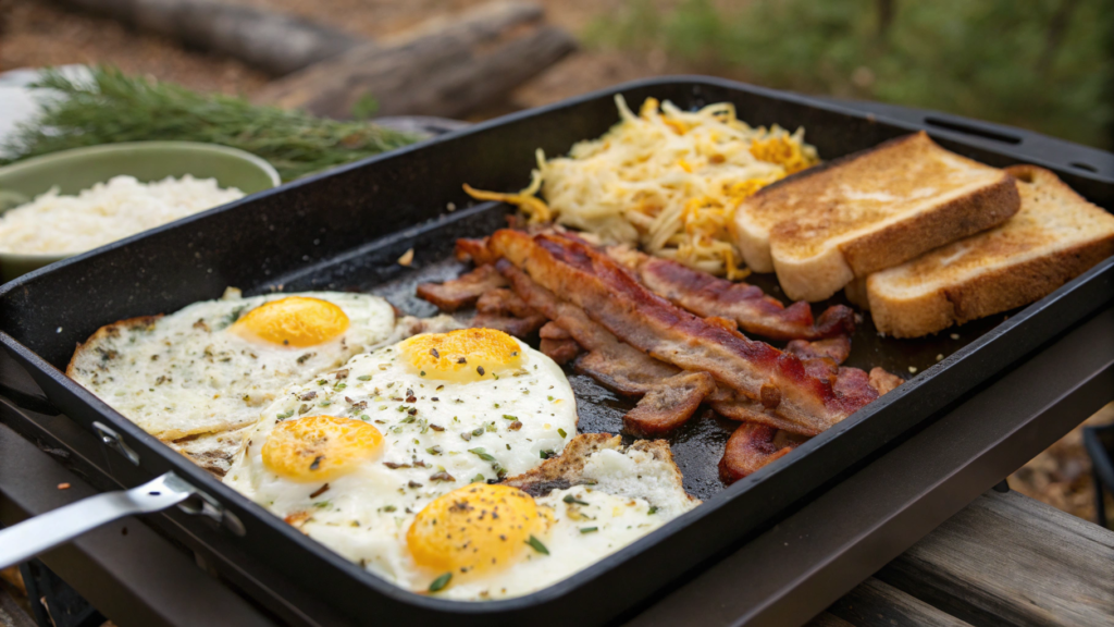 Everything cooks at once on one flat griddle — no chaos, no pile of dirty dishes, and everyone’s full and happy. And when your food looks that good on the skillet and smells even better — you already know, half the job’s done.