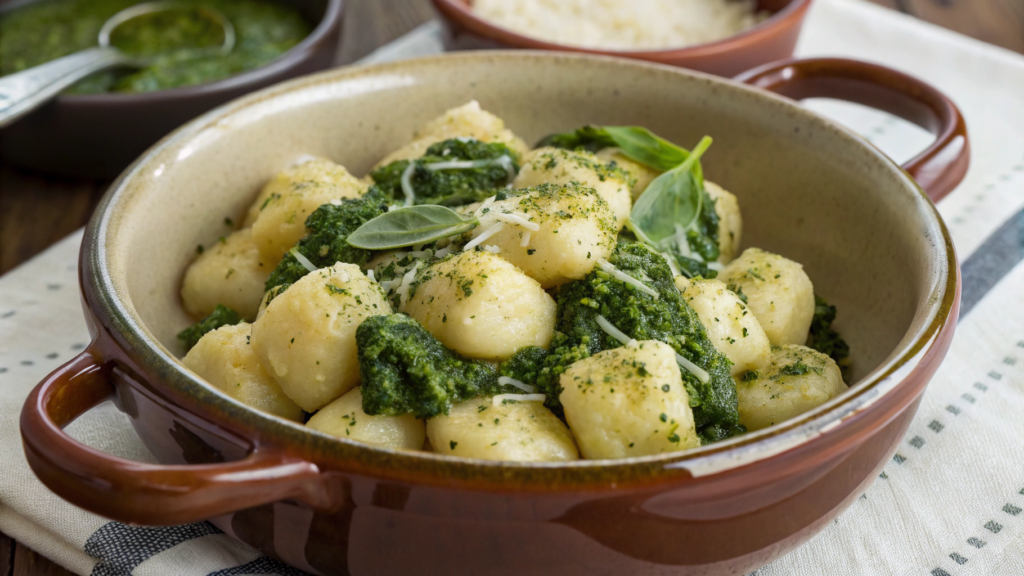 Cauliflower-based gnocchi are a low-carb veggie substitute, and when you combine them with spinach and the fats from pesto, they give you steady energy without glucose spikes.