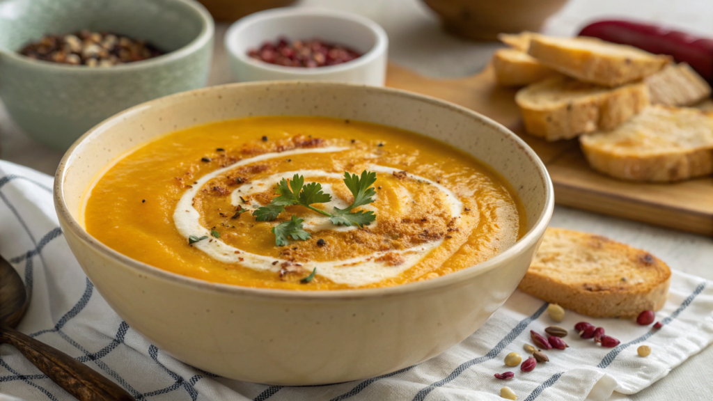 Serve in a deep ceramic bowl, topped with seeds and a spoonful of Greek yogurt — it gives the creaminess without the dairy sugars.