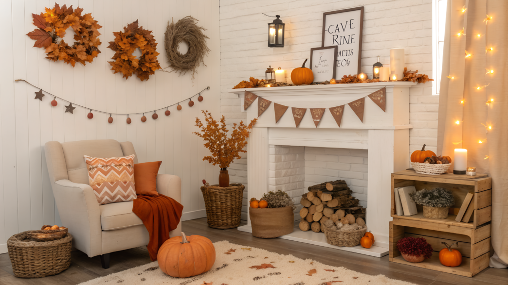 When you look at the finished results — garlands, lanterns, pinecone wall art, or a layer of plaid throws — you realize it’s not just about decor, but about the attention to the home, to the little details that set the mood. Just a couple of jars with golden leaves or a few origami cranes, and suddenly the house feels warmer and more cared for.