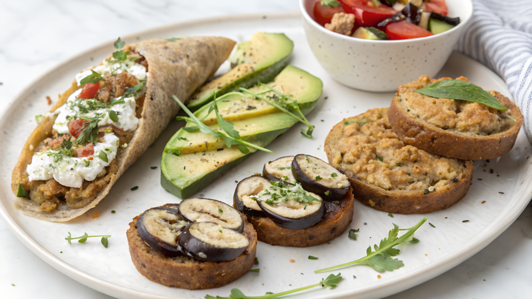 Each serving has a nice balance of protein, fiber, and healthy fats. Eggplant is rich in anthocyanins, which may help fight inflammation and support heart health. Goat cheese is easier to digest than cow’s cheese and provides a solid dose of calcium and protein. Microgreens are a true vitamin powerhouse — packed with vitamins C, E, and K, and contain far more antioxidants than mature plants.